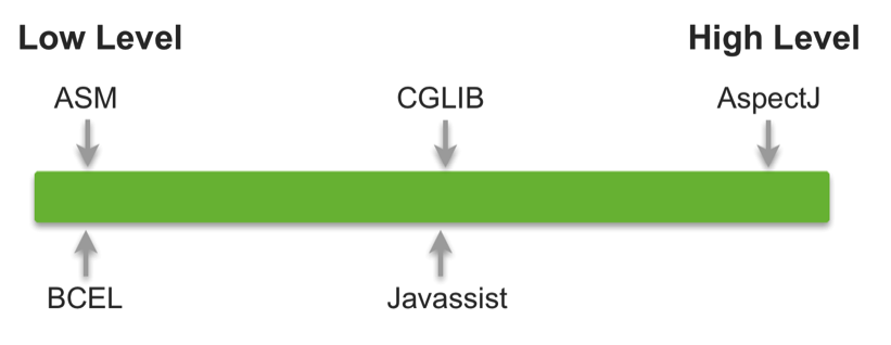 The most common bytecode manipulation libraries in Java are as follows: