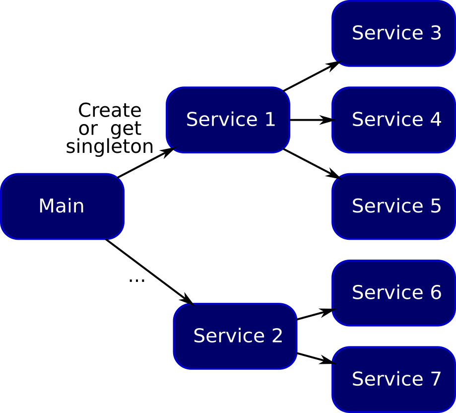 This application uses a few services and the idea here is to use the SCIF framework to manage these services and inject their dependencies.