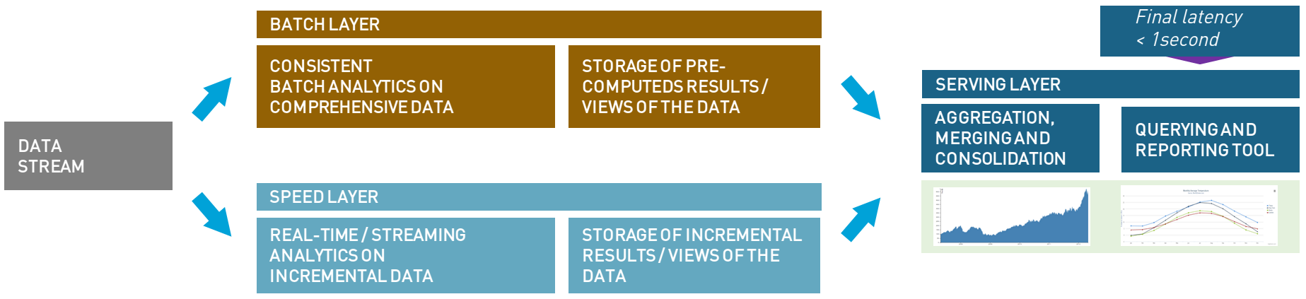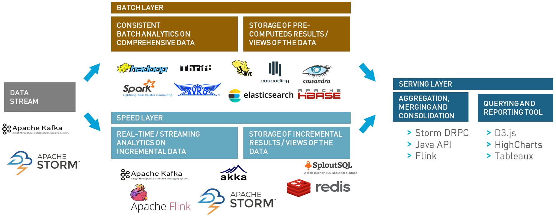 - It can result in coding overhead due to the need to implement the same analytics logic twice: one time in the speed layer and one time all over again in the batch layer.
