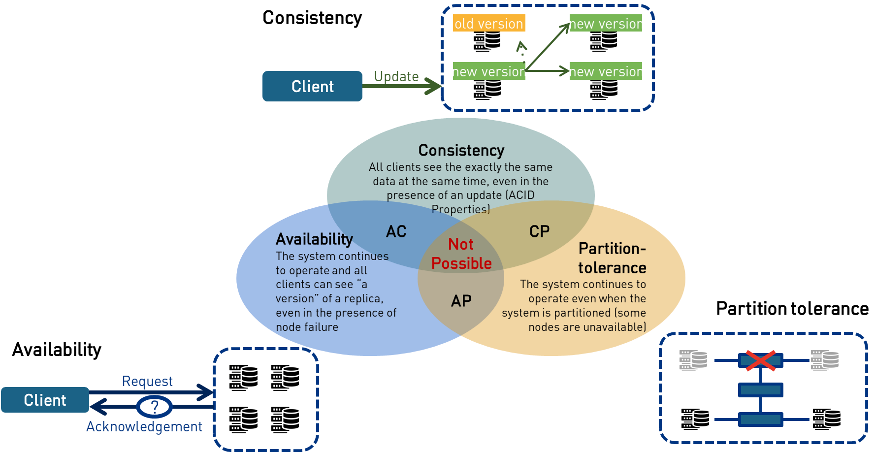 - Data consistency without distributed transactions. Applications need to be designed with this in mind.