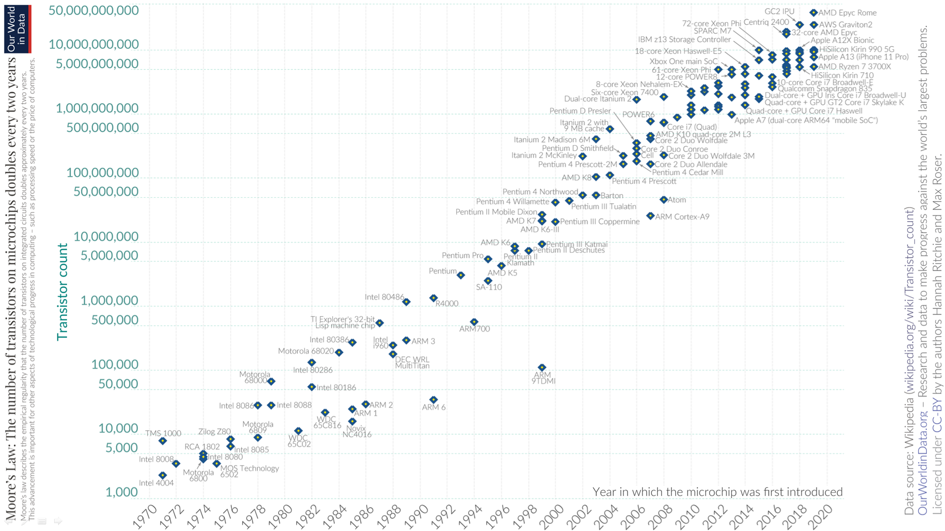 The Moore Law:The number of transistors and resistors on a chip doubles every 24 months" (Gordon Moore, 1965)