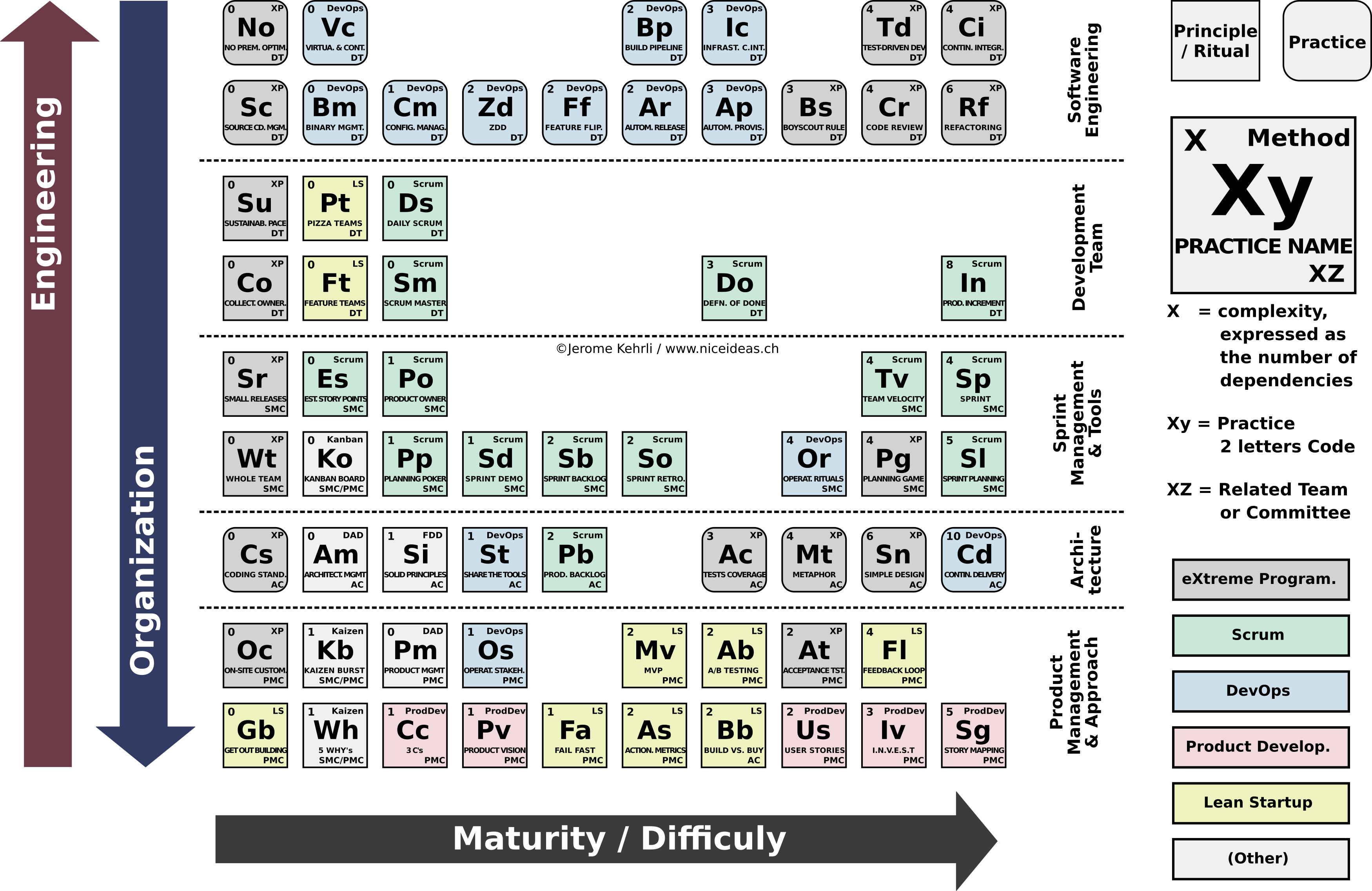 (This article is available as a PDF document here https://www.niceideas.ch/Agile_table.pdf and a slideshare presentation there https://www.slideshare.net/JrmeKehrli/periodic-table-of-agile-principles-and-practices)