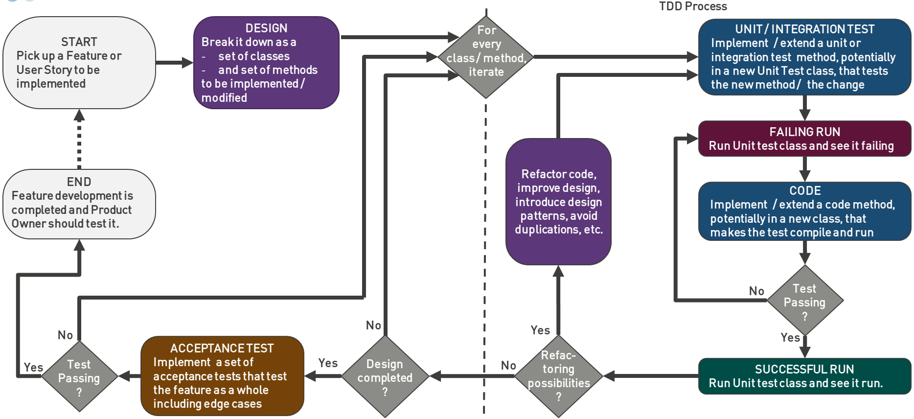 - Execute the test(s) again. The developer then re-runs all the tests ane makes sure that they run successfuly and that everything is working fine.