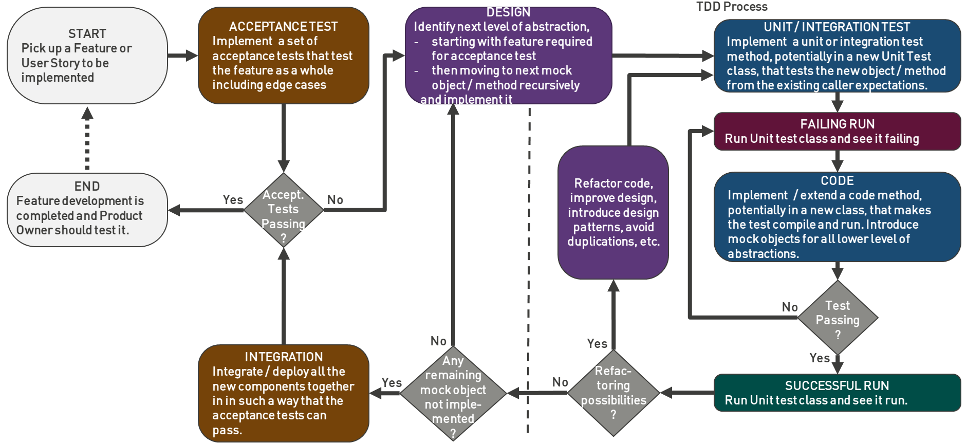 Again, while TDD is mostly about unit testing, and depending on the approach as well as the stage of the development, some other types of tests are fully part of the TDD scope.