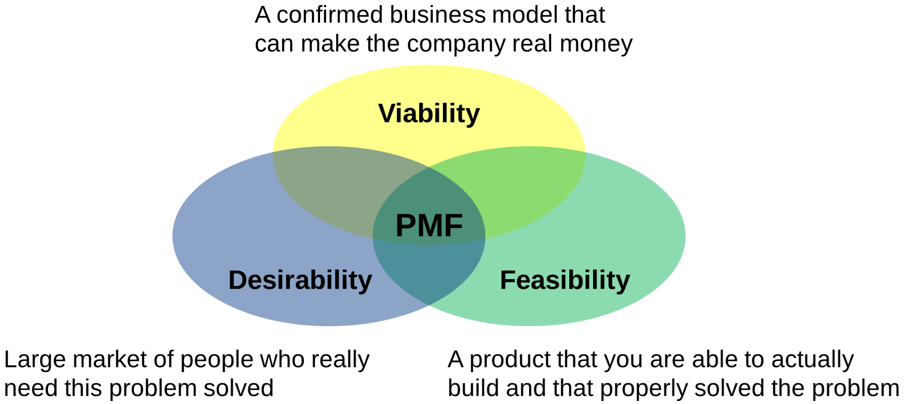 Looking at things from a Human Centered Design perspective - Product Market fit is the intersection between: