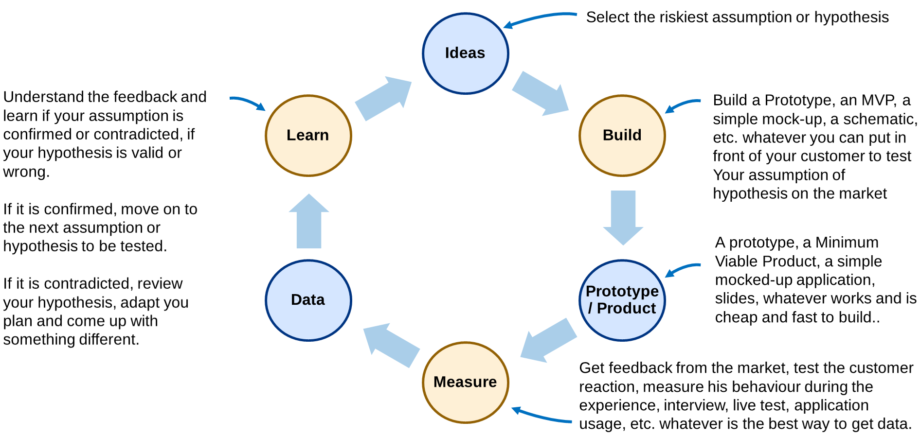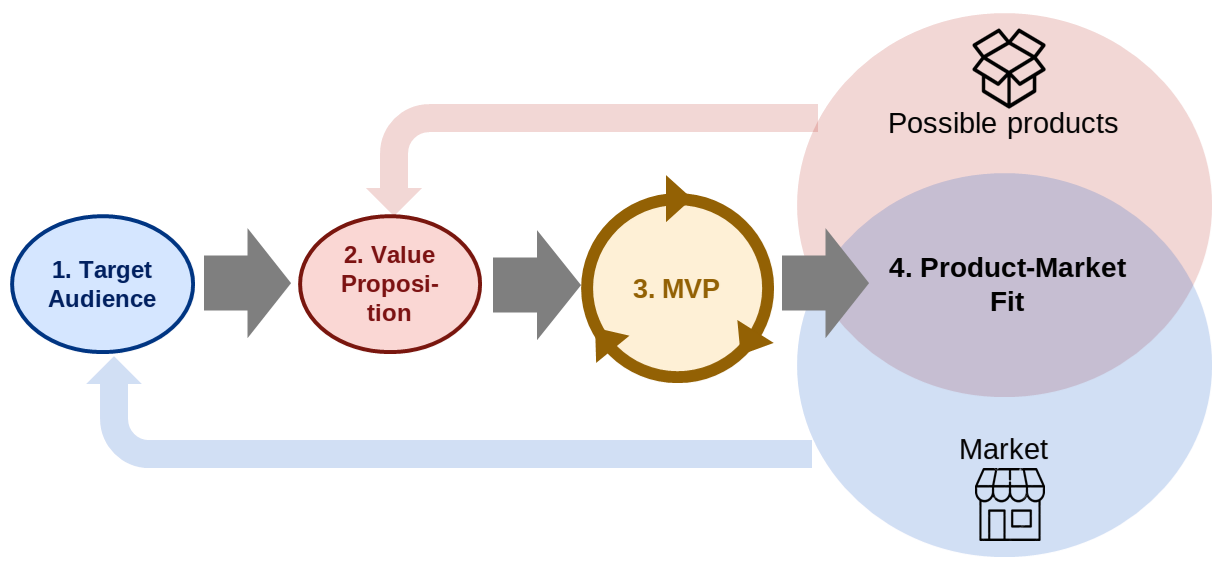 In terms of practical steps, this is a possible process to validate a new business idea and achieve product-market fit: