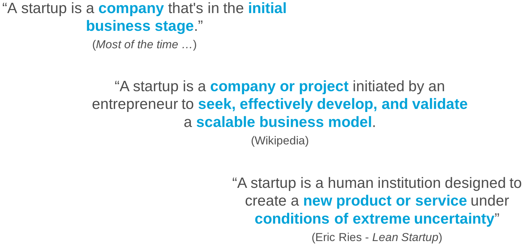 But Eric Ries' definition is the best from my perspective since it emphasizes three important aspects of a startup: